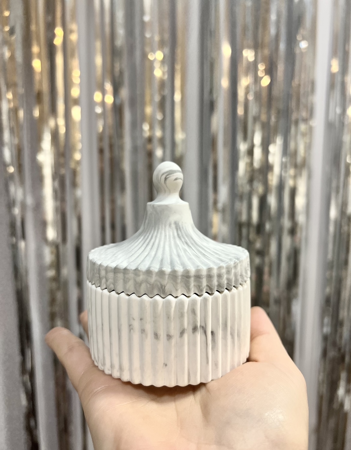 Διακοσμητικό βαζάκι με εφέ μαρμάρου . Ύψος 9.2 cm Διάμετρος 8 cm