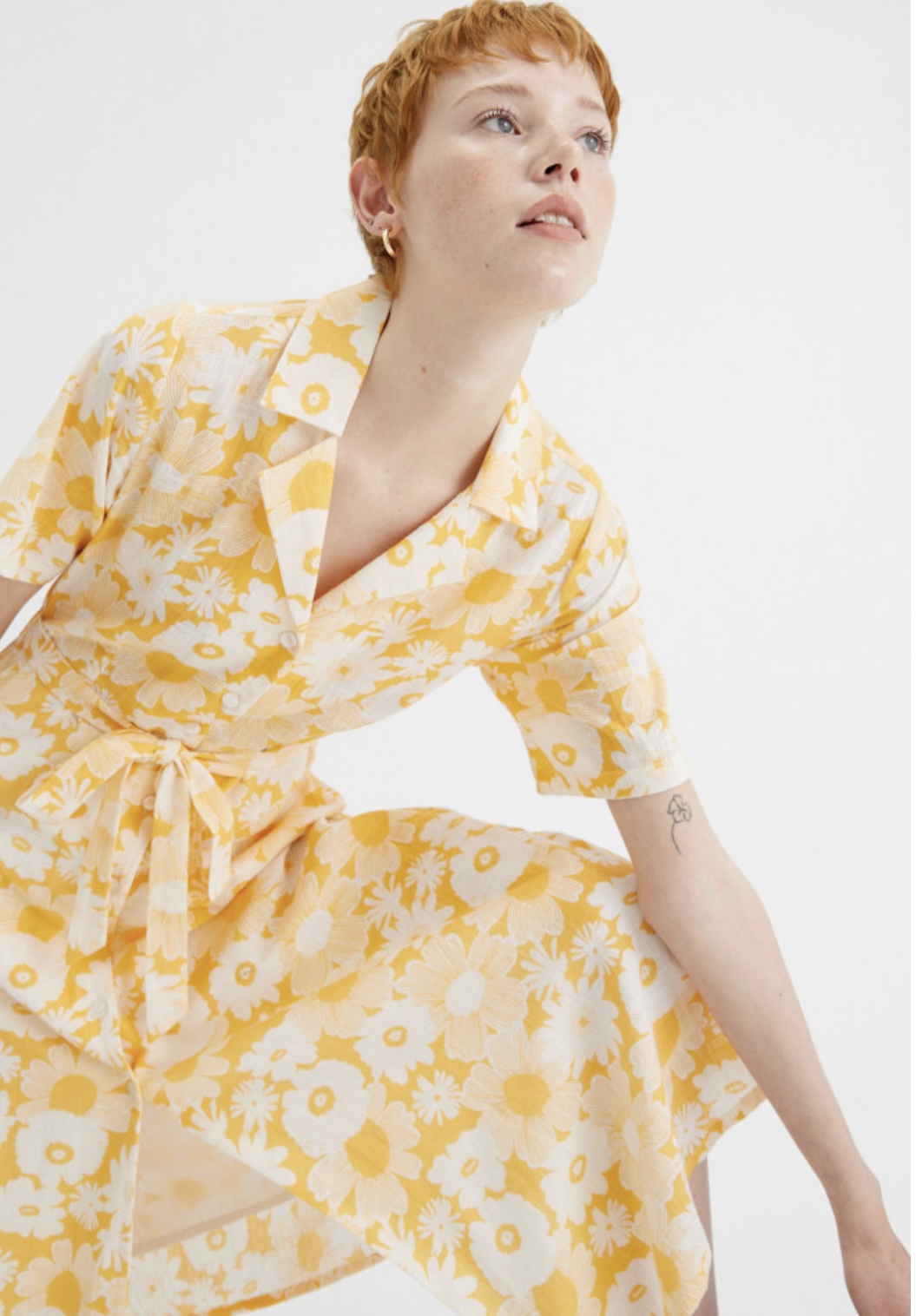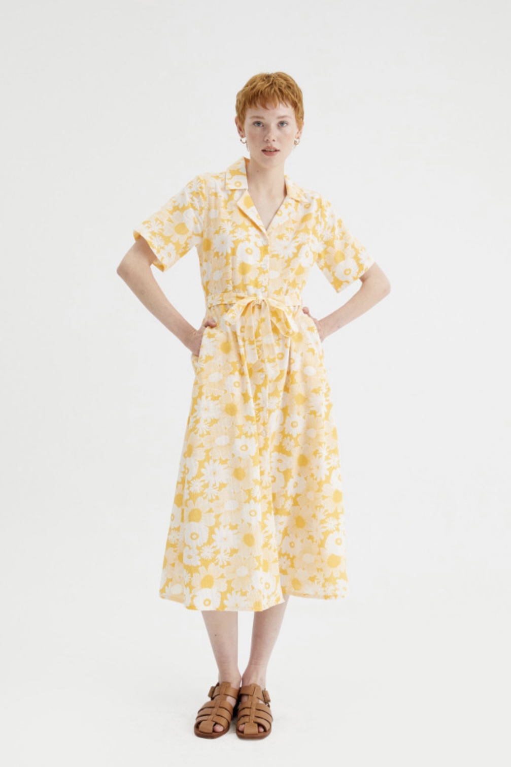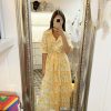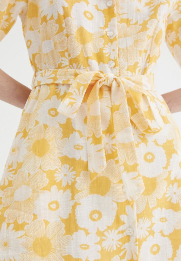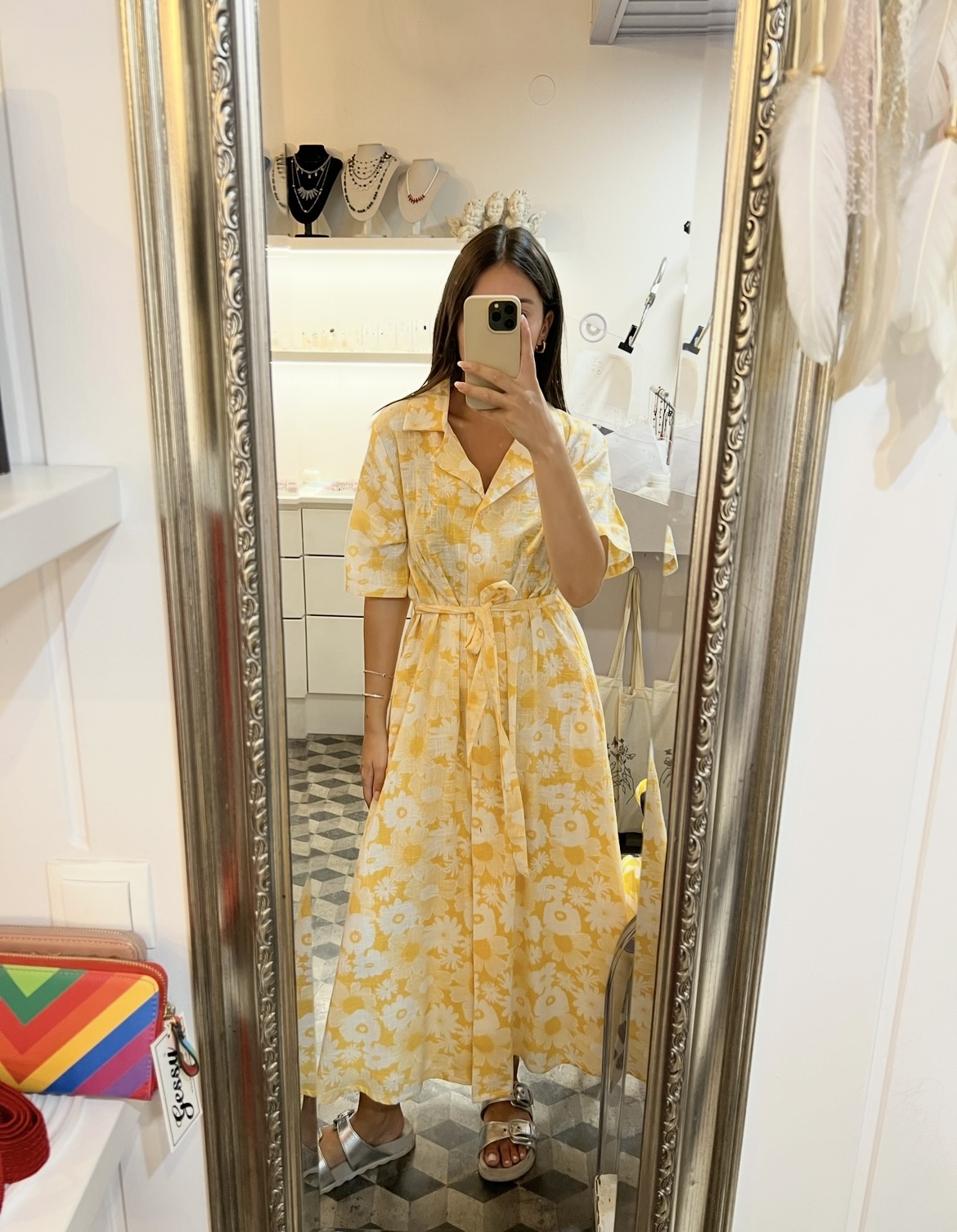 Φορέματα ΚιμονόΚίτρινο φλοράλ φόρεμα με κουμπιά από την Compania Fantastica