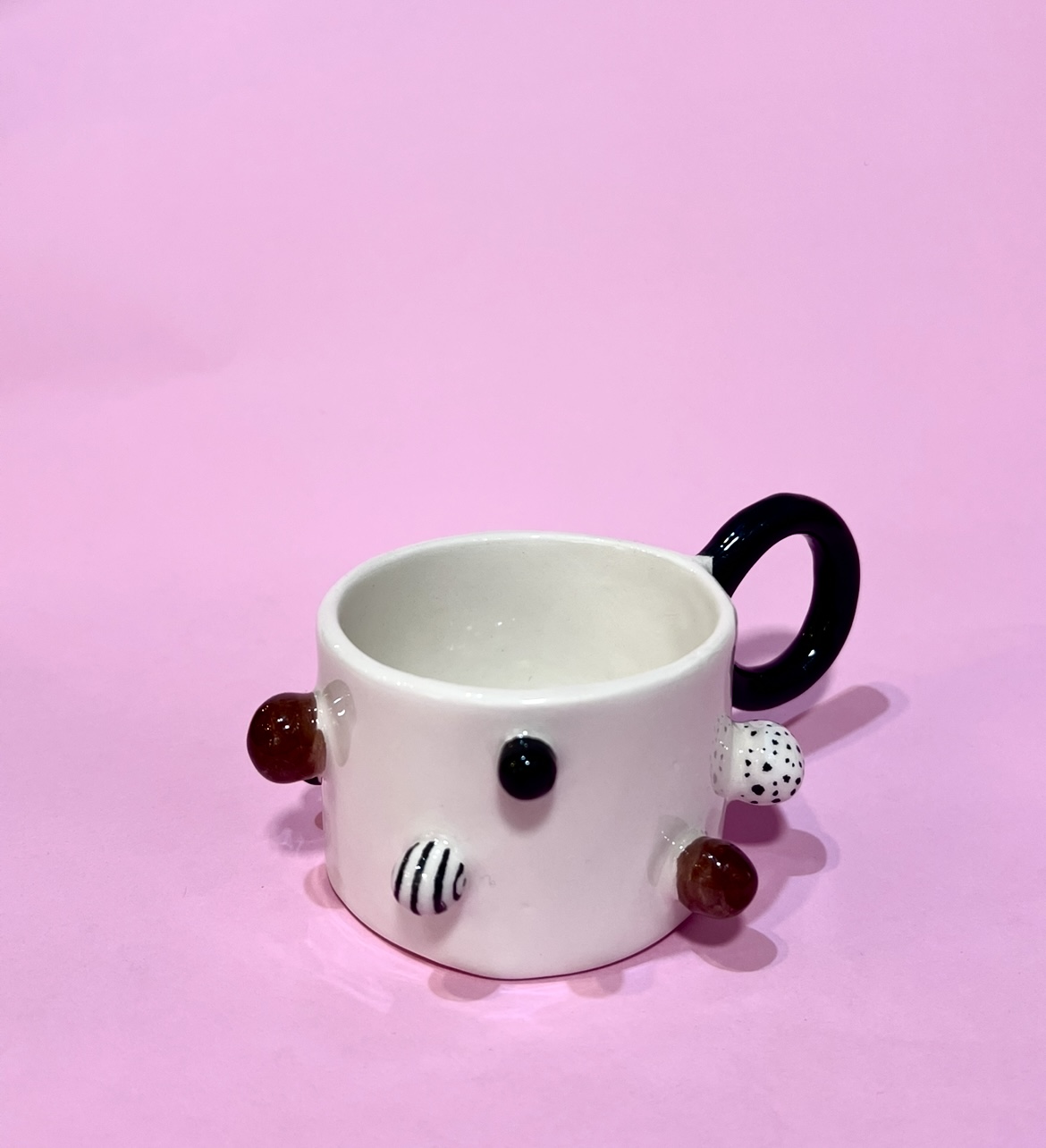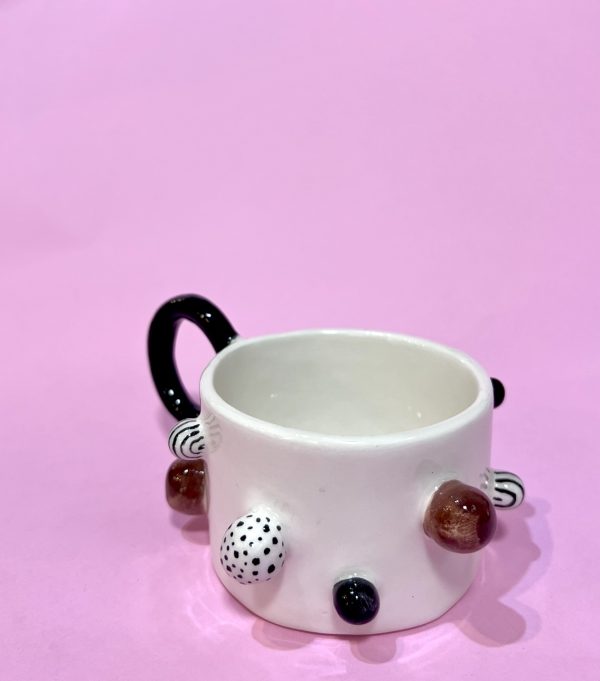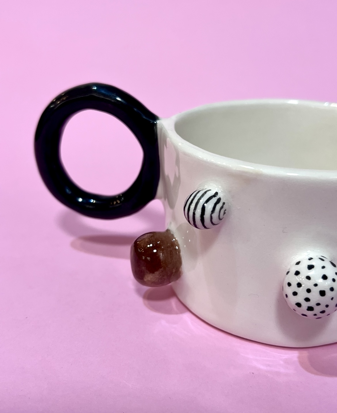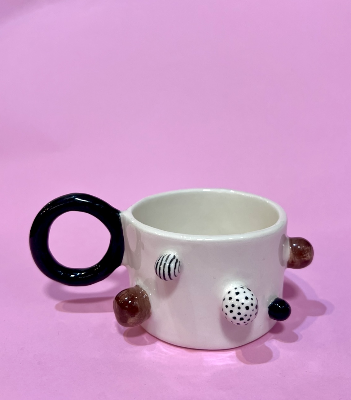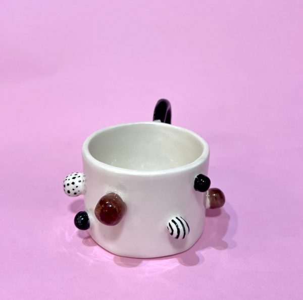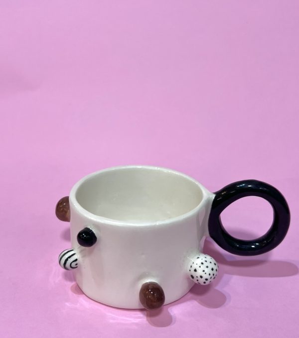 Κεραμική χειροποίητη κούπα με ανάγλυφα pompon