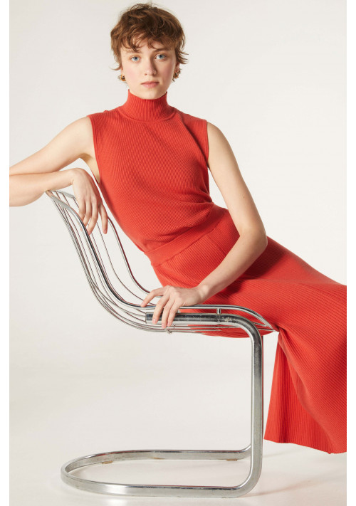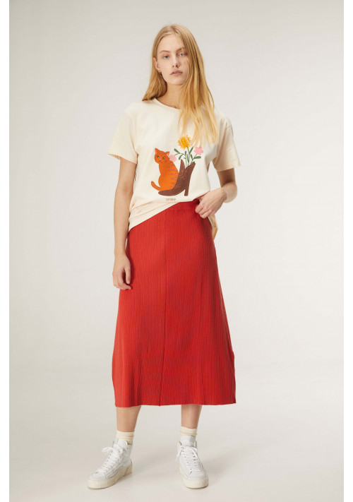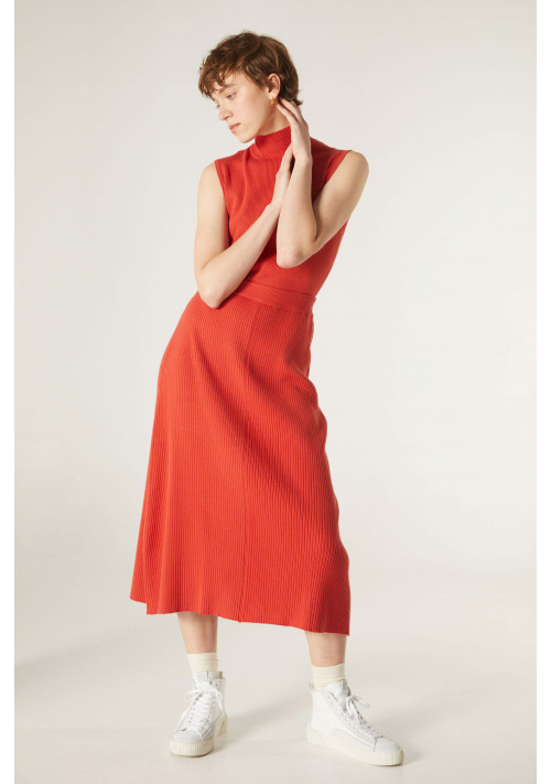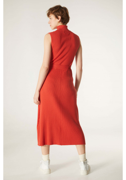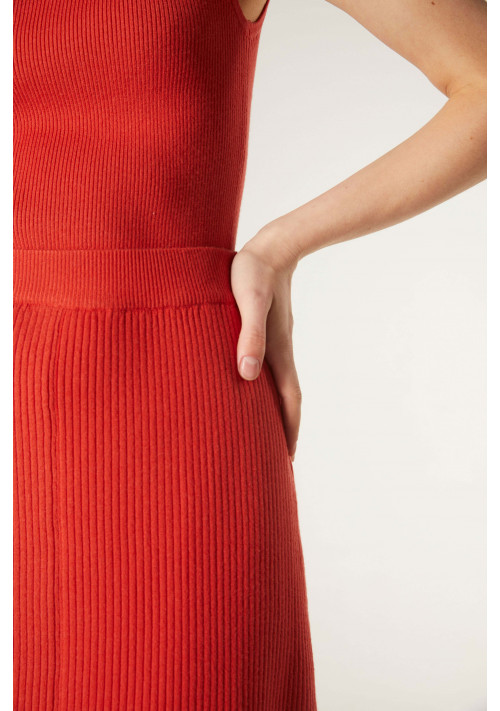 Κόκκινη πλεκτή φούστα midi με ελαστική μέση. 52% viscose 28% polyester 20% polyamide
