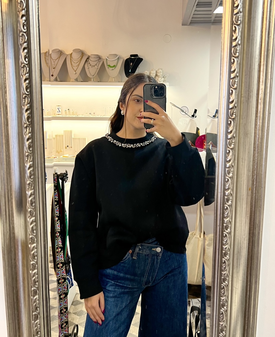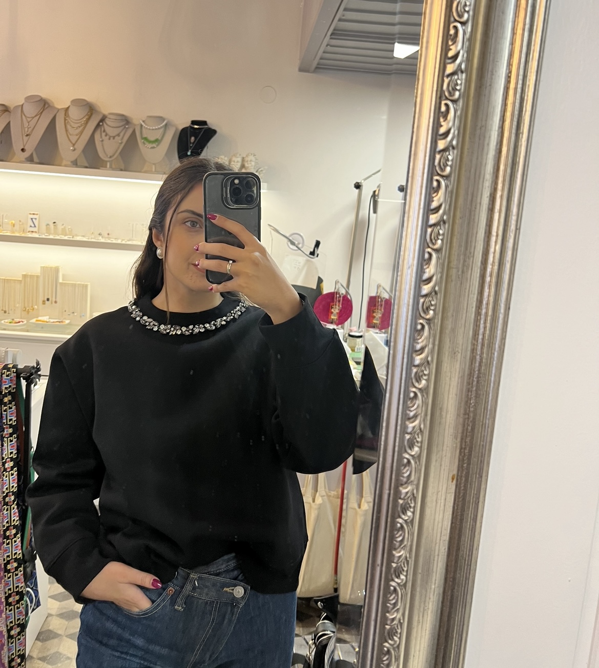 Μαύρη μπλούζα με κρύσταλλα στην λαιμόκοψη. Από την Compania Fantastica .
