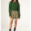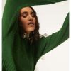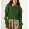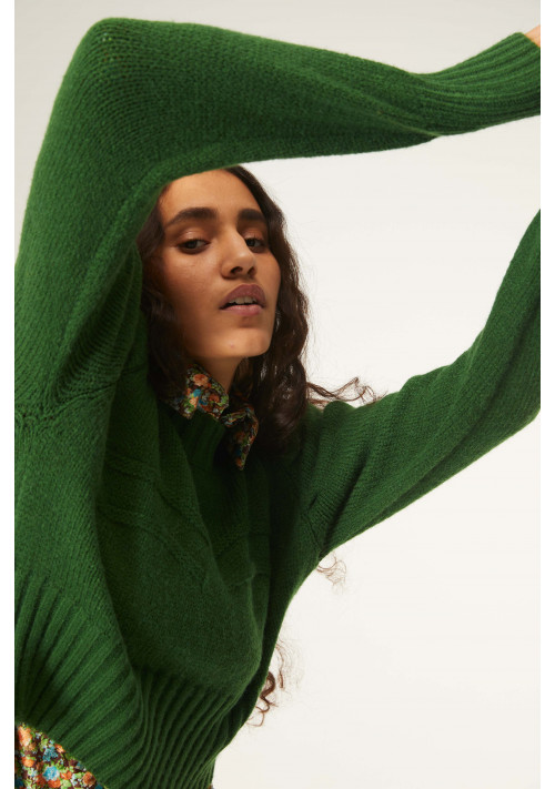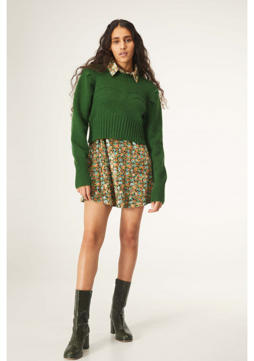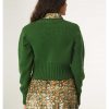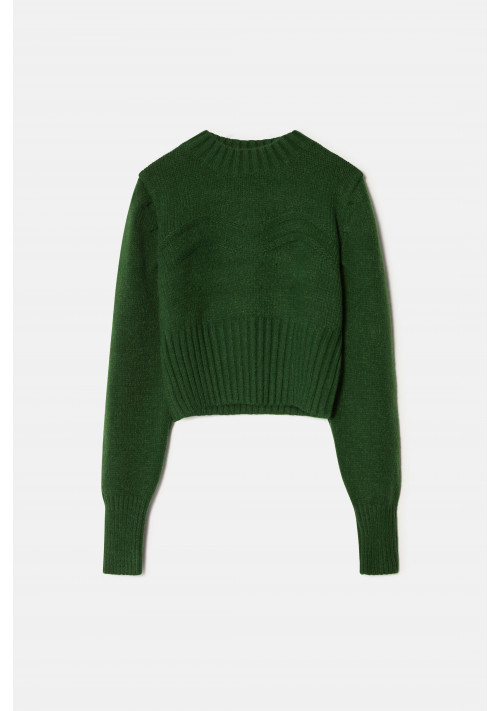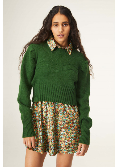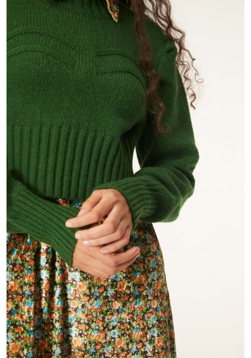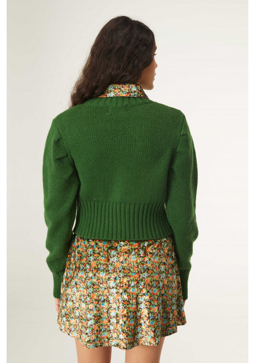 Πράσινη crop πλεκτή μλπούζα με φουσκωτά μανίκια