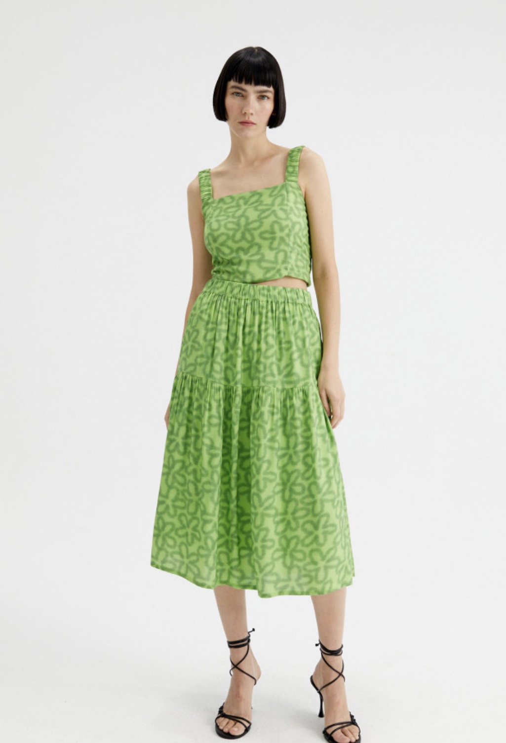 Πράσινη Φλοραλ φούστα από την Compania Fantastica 100% viscose