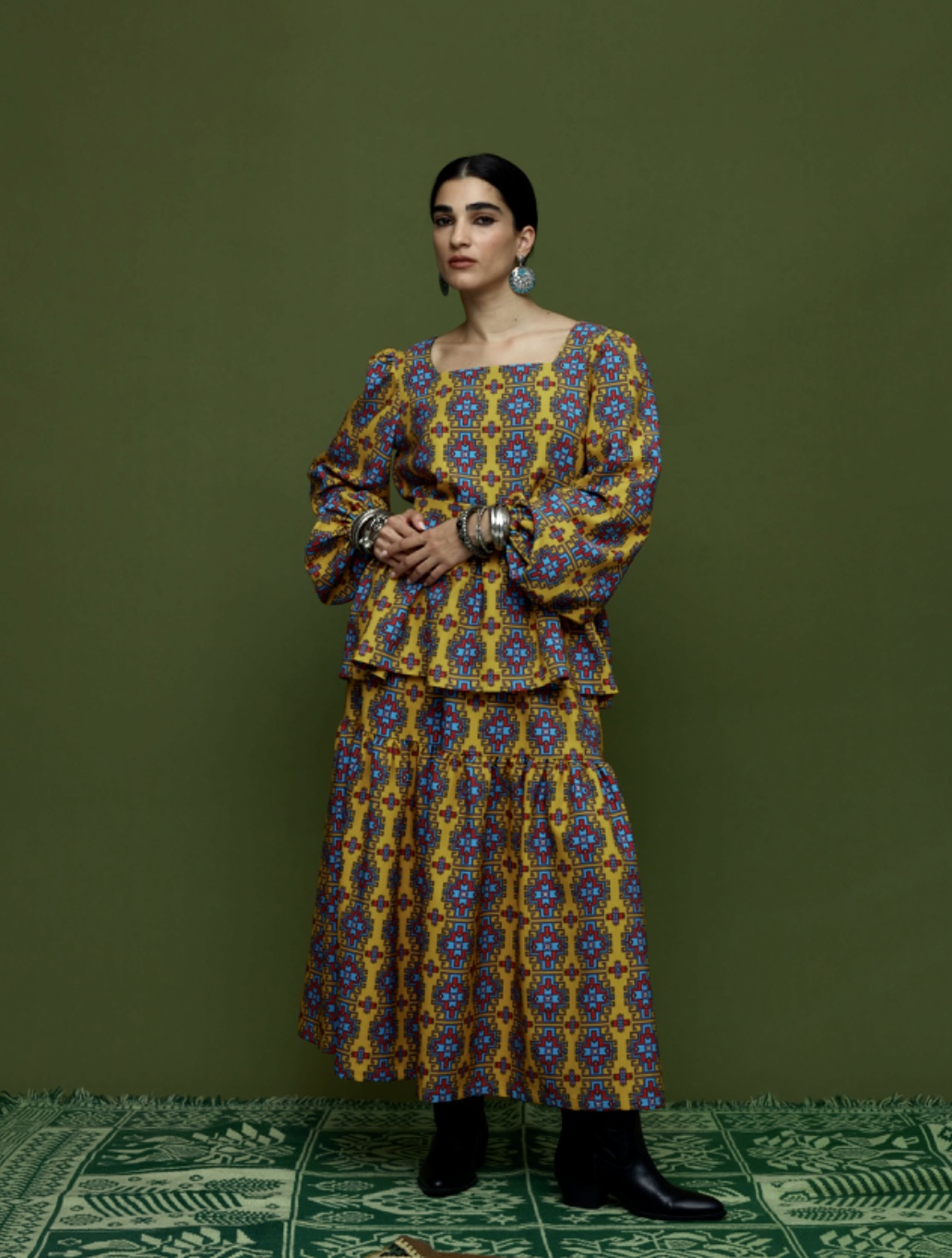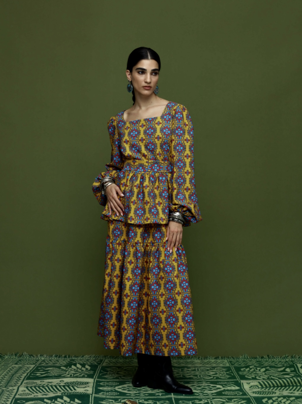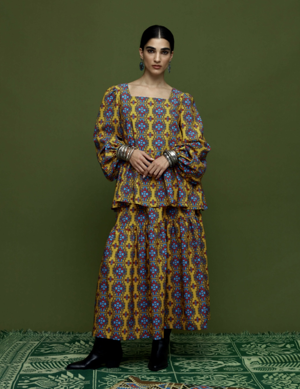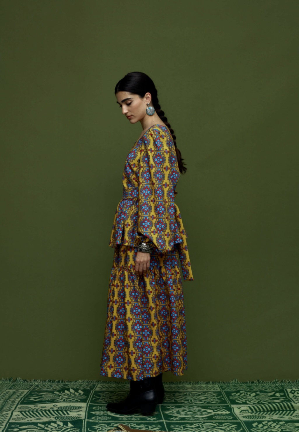 ARGALIOS SKIRT (LEONIDIO MUSTARD PRINT)