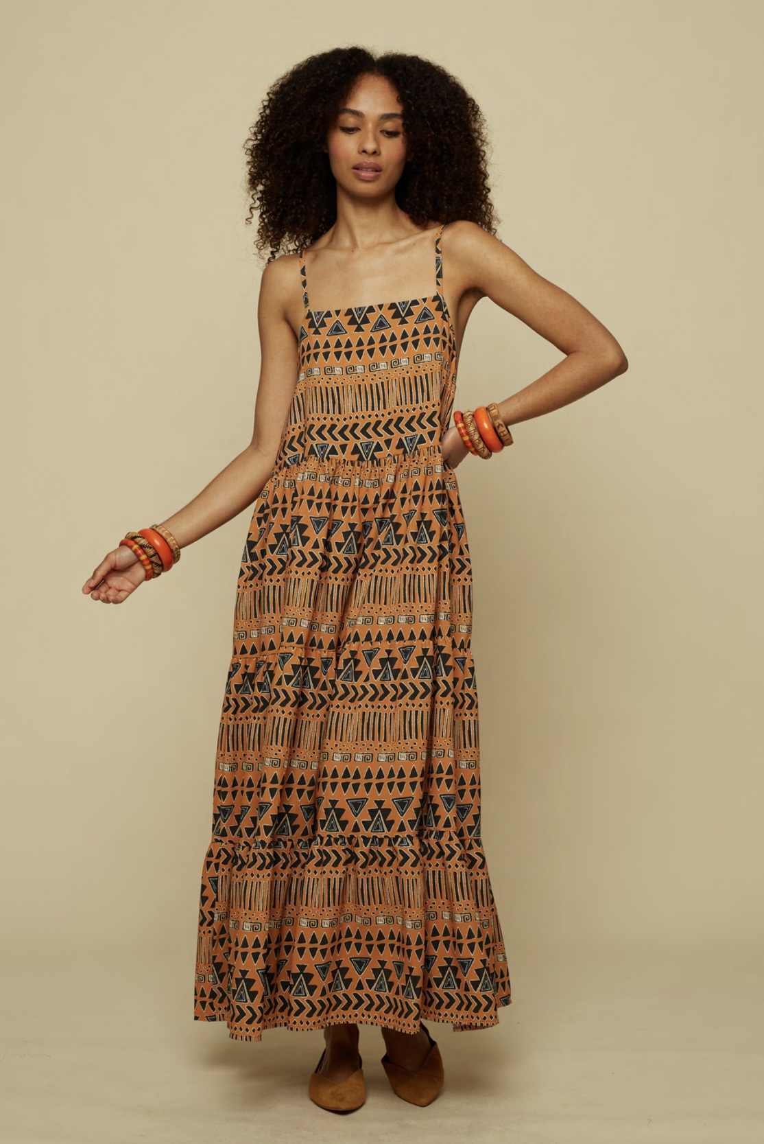 HOMER MAXI ΦΟΡΕΜΑ (BROWN ABSTRACT GEOMETRY PRINT)