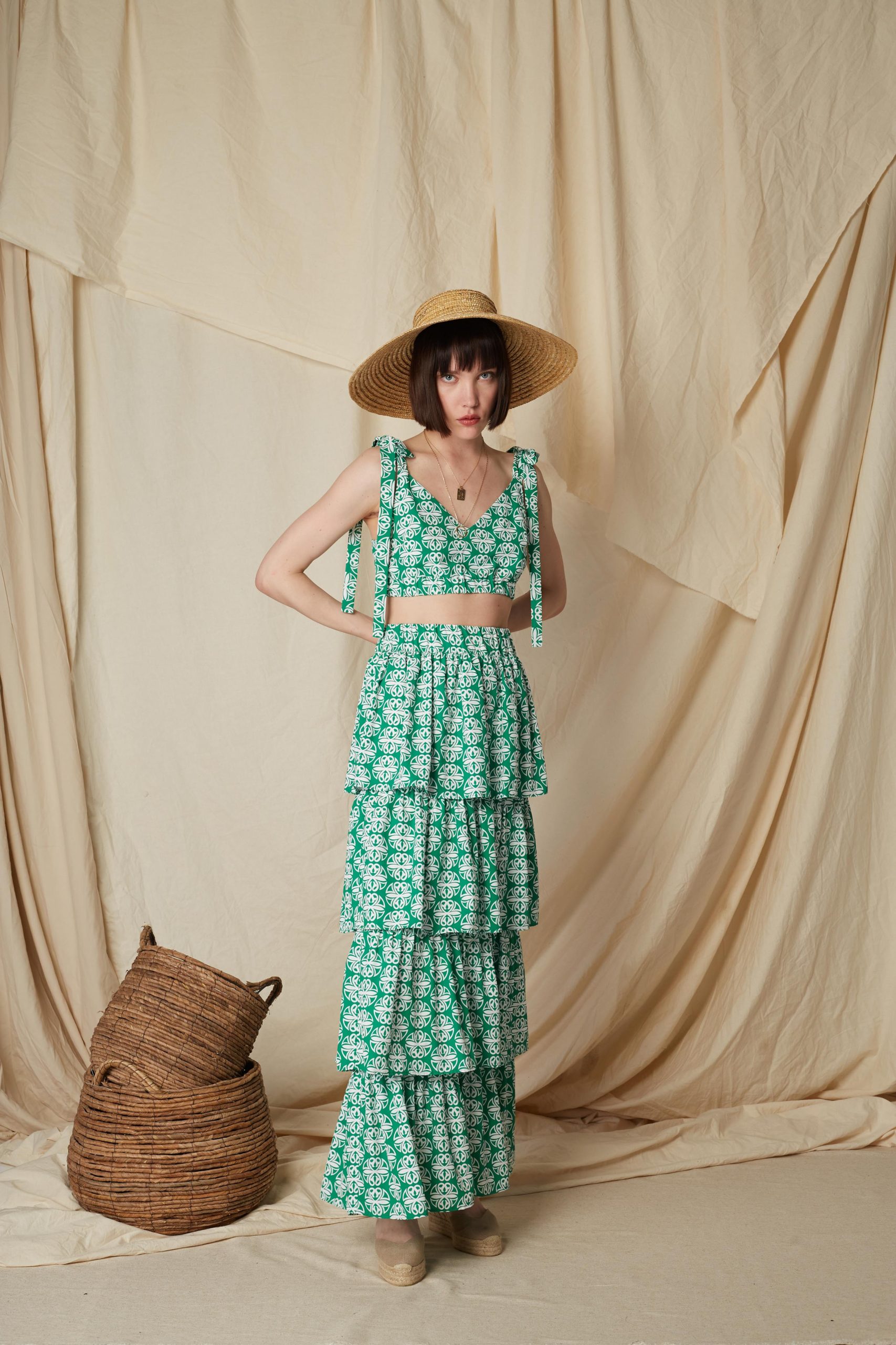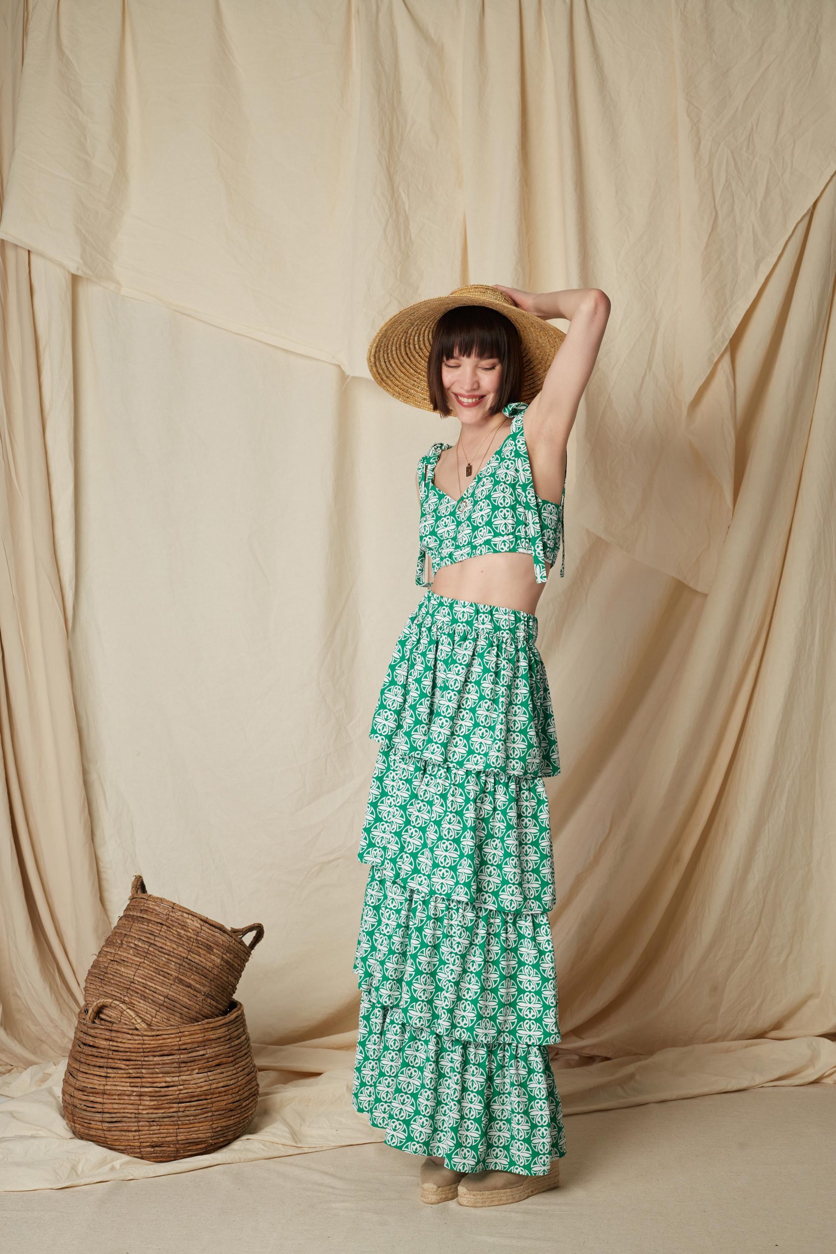 Wearable from day to night! 4 layers of ruffles and easily adjustable due to its elastic band.