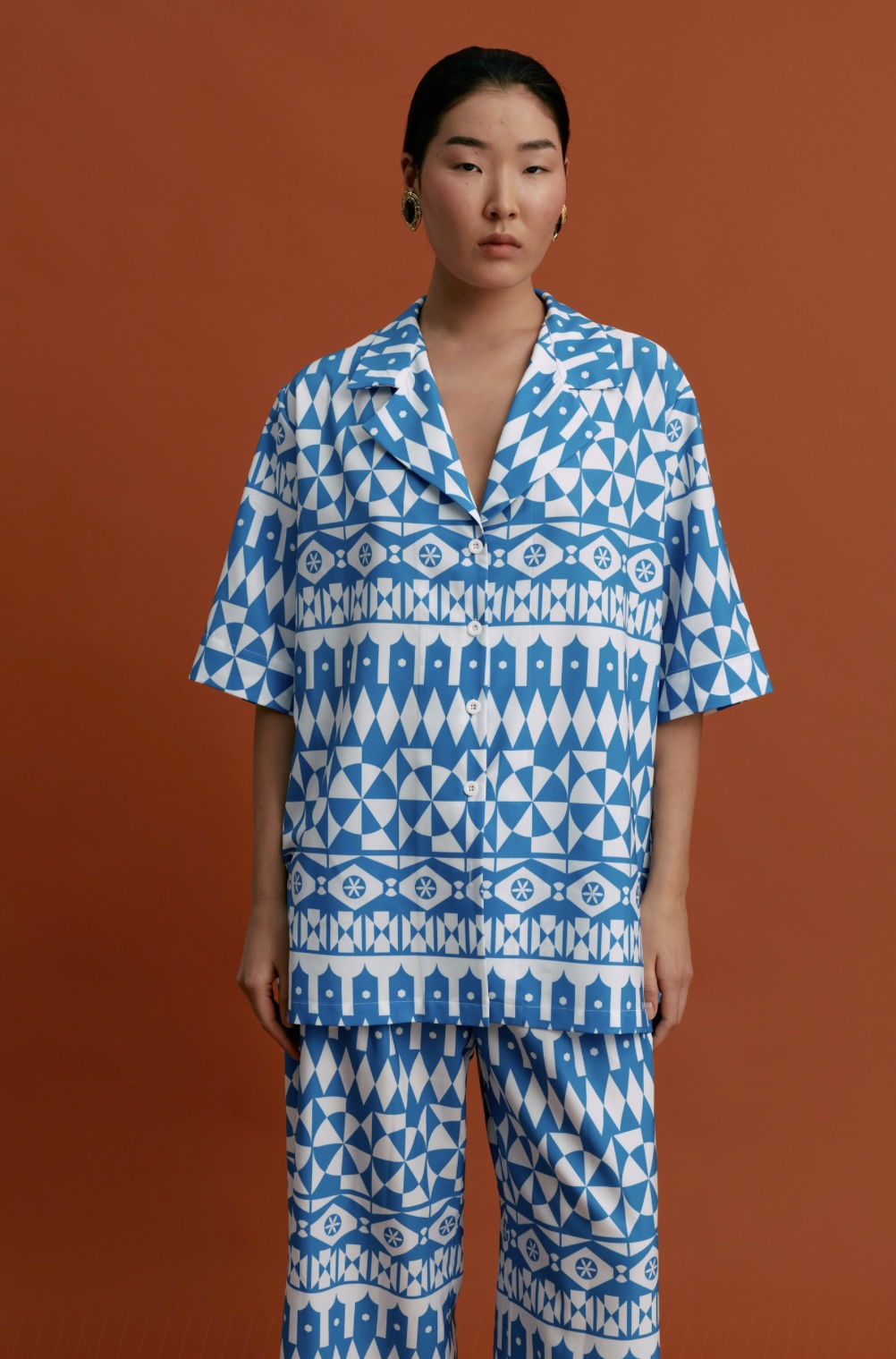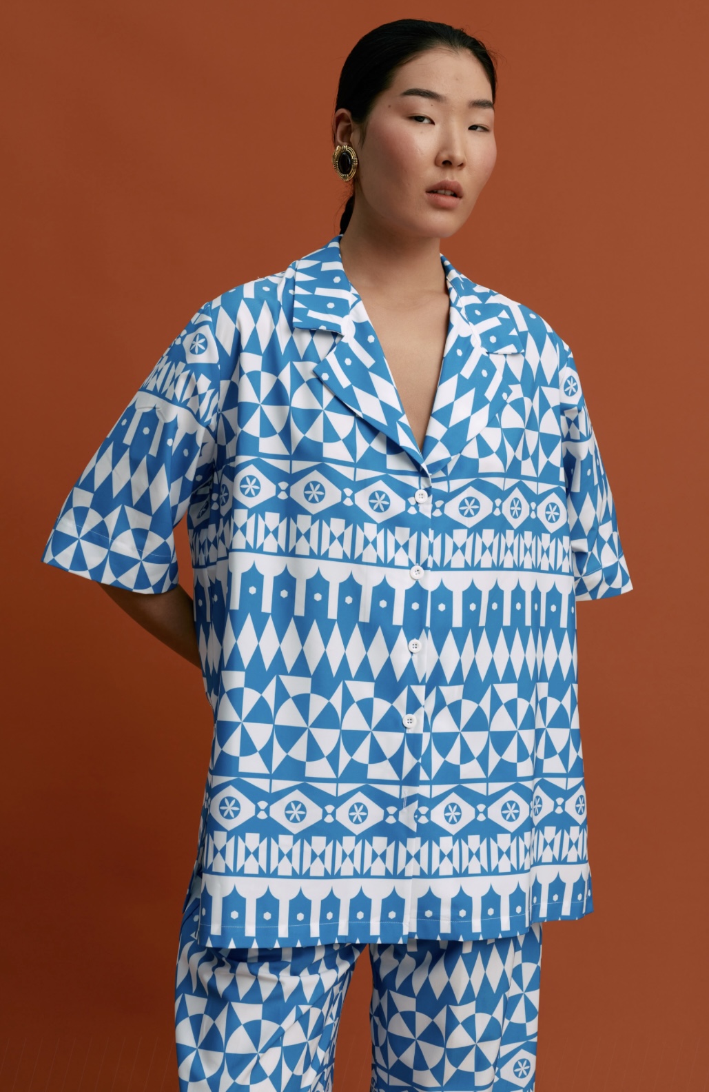 MASTICHOCHORI Shirt (White Motifs Blue)