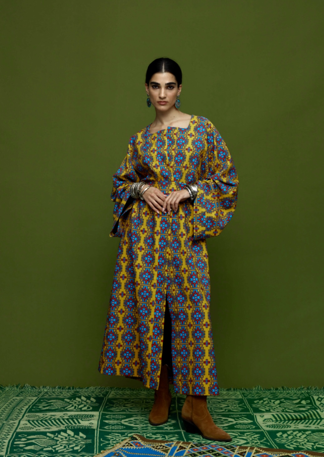 Tapis overcoat (leonidio mustard print)